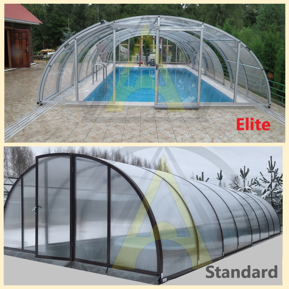 - самый крепкий павильон для бассейна за счет простой арочной формы